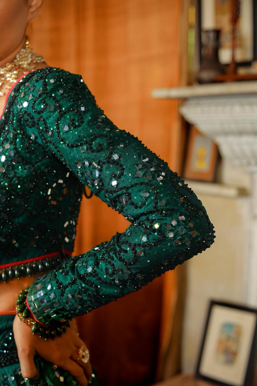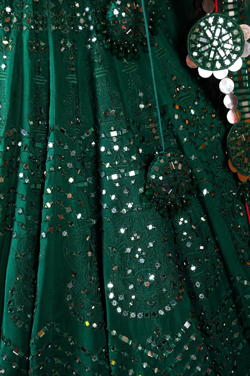 From the flawless handwork to the regal silhouette, this ensemble is designed for the bride who desires grace, grandeur, and unforgettable charm. A perfect choice for weddings, receptions, mehndi nights, and couture bridal looks — where every twirl tells a story of heritage and elegance.